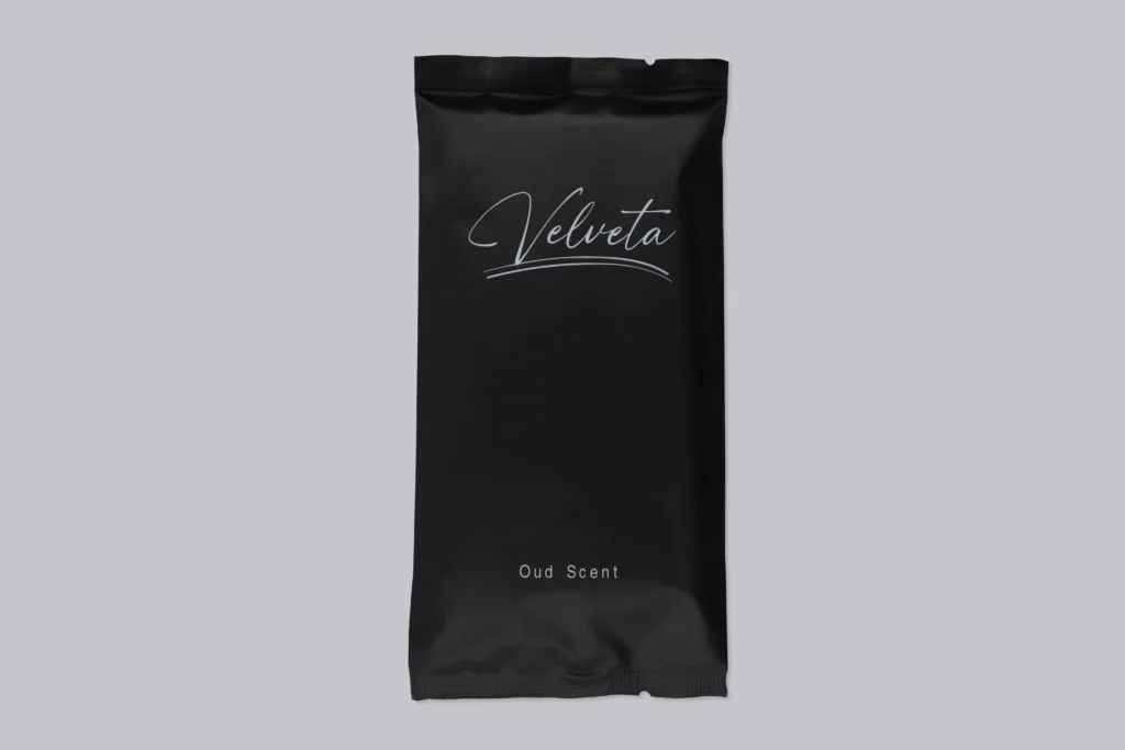 Velveta Luxury Wet Towels offer an upscale experience with ultra-soft microfiber texture and a delicate oud aroma. Packaged in a refined luxury box, these towels combine sophistication with practicality, making them the perfect choice for anyone seeking quality and comfort in Qatar.